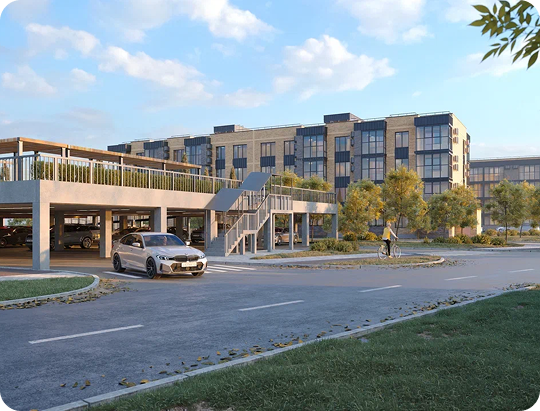 - Подземный паркинг и современные системы безопасности.